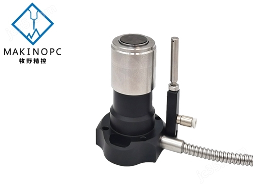 對(duì)刀儀業(yè)俗稱機(jī)內(nèi)對(duì)刀器、斷刀檢測(cè)儀或自動(dòng)對(duì)刀儀,他是CNC數(shù)控機(jī)床中的一個(gè)標(biāo)準(zhǔn)配件,對(duì)刀儀的核心部件是由一個(gè)高進(jìn)度的開關(guān)(觸頭)一個(gè)高硬度高耐磨的硬質(zhì)合金圓面體(對(duì)刀面)和一個(gè)信號(hào)傳輸轉(zhuǎn)換芯片組成(其他件略)  ,對(duì)刀面是用于與刀具接觸,把力傳至高精度開關(guān),開關(guān)所發(fā)出的通斷信號(hào)通過(guò)高柔高導(dǎo)高蔽的傳輸線傳輸?shù)綌?shù)控系統(tǒng)宏程序中進(jìn)行刀具方向識(shí)別、運(yùn)算、補(bǔ)償、存取等,從而實(shí)現(xiàn)對(duì)刀、斷刀刀具磨損、刀徑刀擺等檢測(cè)。使用對(duì)刀儀可以縮短工具測(cè)量時(shí)間,提高機(jī)床運(yùn)轉(zhuǎn)效率,實(shí)現(xiàn)自動(dòng)化運(yùn)轉(zhuǎn),節(jié)省人力提高加工精度,防止不良品出現(xiàn)。
