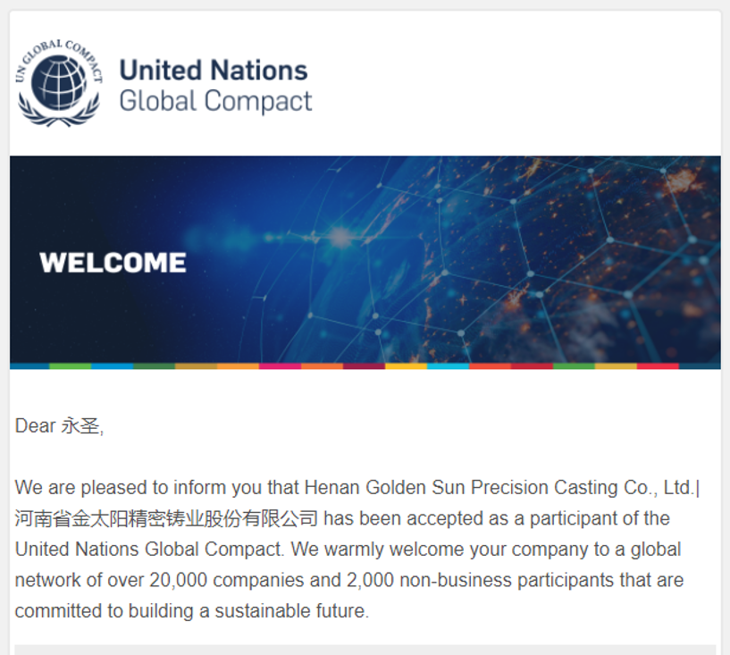 更難能可貴的是,金太陽鑄業(yè)于2026年1月正式加入了聯(lián)合國全球契約組織(UNGC),承諾履行全球契約十項(xiàng)原則。這不僅是對(duì)EcoVadis評(píng)估中“環(huán)境”和“人權(quán)”承諾的國際化延伸,更是企業(yè)從“經(jīng)營(yíng)合規(guī)”向“全球公民”角色轉(zhuǎn)變的莊嚴(yán)宣誓。