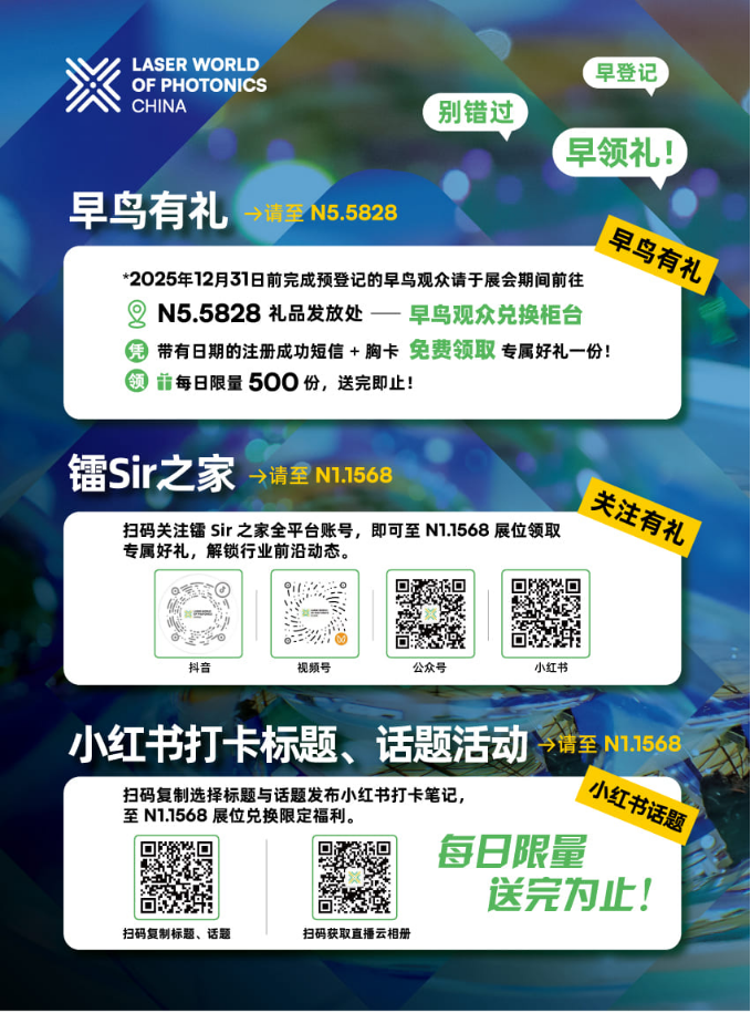 點(diǎn)擊此處立即注冊(cè)參觀:https://s.world-of-photonics-china.com.cn/gXXWKV