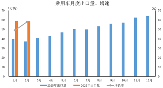 2026年1-2月,乘用車出口117.4萬輛,同比增長53.3%。