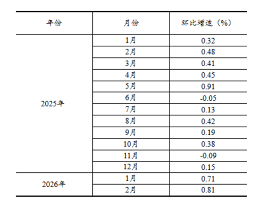 根據(jù)季節(jié)調(diào)整模型自動修正的結(jié)果,對2025年1月份至12月份社會消費品零售總額環(huán)比增速進行修訂。修訂結(jié)果及2026年1、2月份環(huán)比數(shù)據(jù)如下: