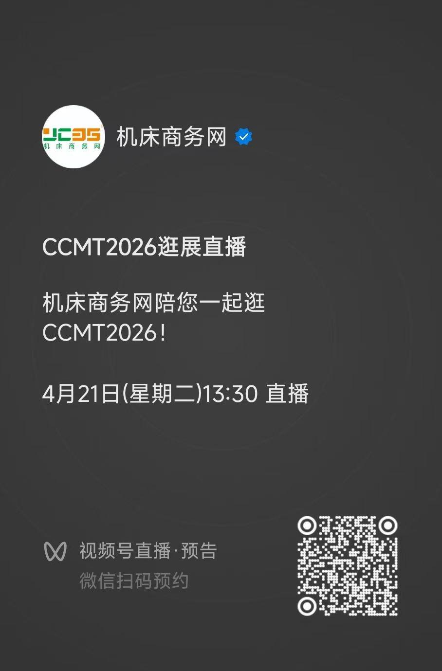 4 月 21 日 13:30,鎖定機(jī)床商務(wù)網(wǎng)視頻號(hào)直播間,和我們一起解鎖 CCMT2026 的精彩!