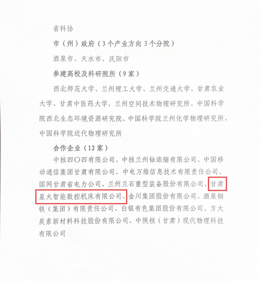 摘要甘肅星火智能數控機床有限公司入選教育部甘肅高等研究院理事單位。