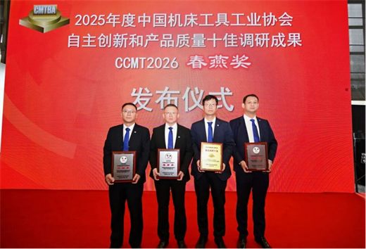 4月21日下午,在展會現(xiàn)場舉行2025年度中國機床工具工業(yè)協(xié)會“自主創(chuàng)新十佳”和“產(chǎn)品質(zhì)量十佳”調(diào)研成果暨CCMT2026春燕獎發(fā)布儀式。通用技術(shù)天鍛公司THP11D-15000高性能鎂合金等溫模鍛智能成套裝備榮獲“自主創(chuàng)新十佳”稱號;通用技術(shù)國測時柵RAC/RAS系列產(chǎn)品、通用技術(shù)哈量公司L系列575型三坐標(biāo)測量機、通用技術(shù)昆明機床HMU125h精密臥式銑鏜加工中心、通用技術(shù)沈陽機床SMU350葉片五軸加工中心、通用技術(shù)天津一機VG63高精度立式磨床等5款產(chǎn)品榮獲“春燕獎”。 4月22日下午,機械工業(yè)信息研究院聯(lián)合金屬加工雜志社舉行第四屆加工中心用戶調(diào)查結(jié)果發(fā)布暨“金鋒獎”加工中心產(chǎn)品創(chuàng)新獎發(fā)布儀式。通用技術(shù)機床公司榮獲第四屆加工中心用戶調(diào)查“用戶滿意品牌”獎項;通用技術(shù)昆明機床研制的HoriMil100-5A五軸坐標(biāo)鏜銑加工中心榮獲第二屆加工中心產(chǎn)品
