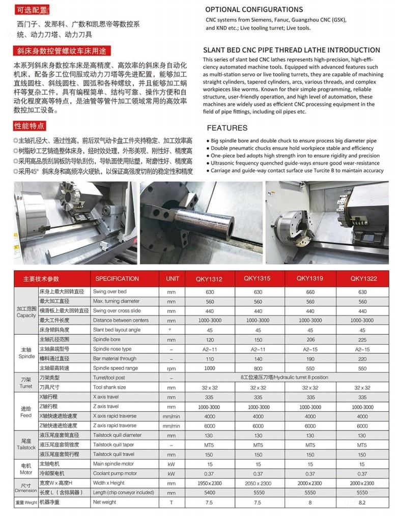 本系列斜床身數(shù)控車床是高精度、高效率的斜床身自動(dòng)化機(jī)床,配備多工位伺服或動(dòng)力刀塔等先進(jìn)配置,能夠加工直線圓柱、斜線圓柱、圓弧和各種螺紋,并且能夠加工蝸桿等復(fù)雜工件,具有編程簡(jiǎn)單、結(jié)構(gòu)可靠、操作方便和自動(dòng)化程度高等特點(diǎn),是油管等管件加工領(lǐng)域常用的高效率數(shù)控加工設(shè)備。