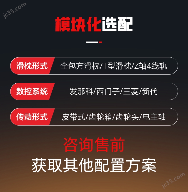 可選配直聯(lián)式,皮帶式,齒輪箱,電主軸,兼顧高速切削和重切削;