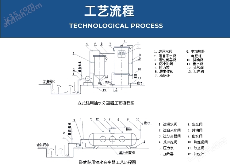處理能力為 0.5m3/h 的移動式油水分離器用于處理全廠零星含油廢水的處理。